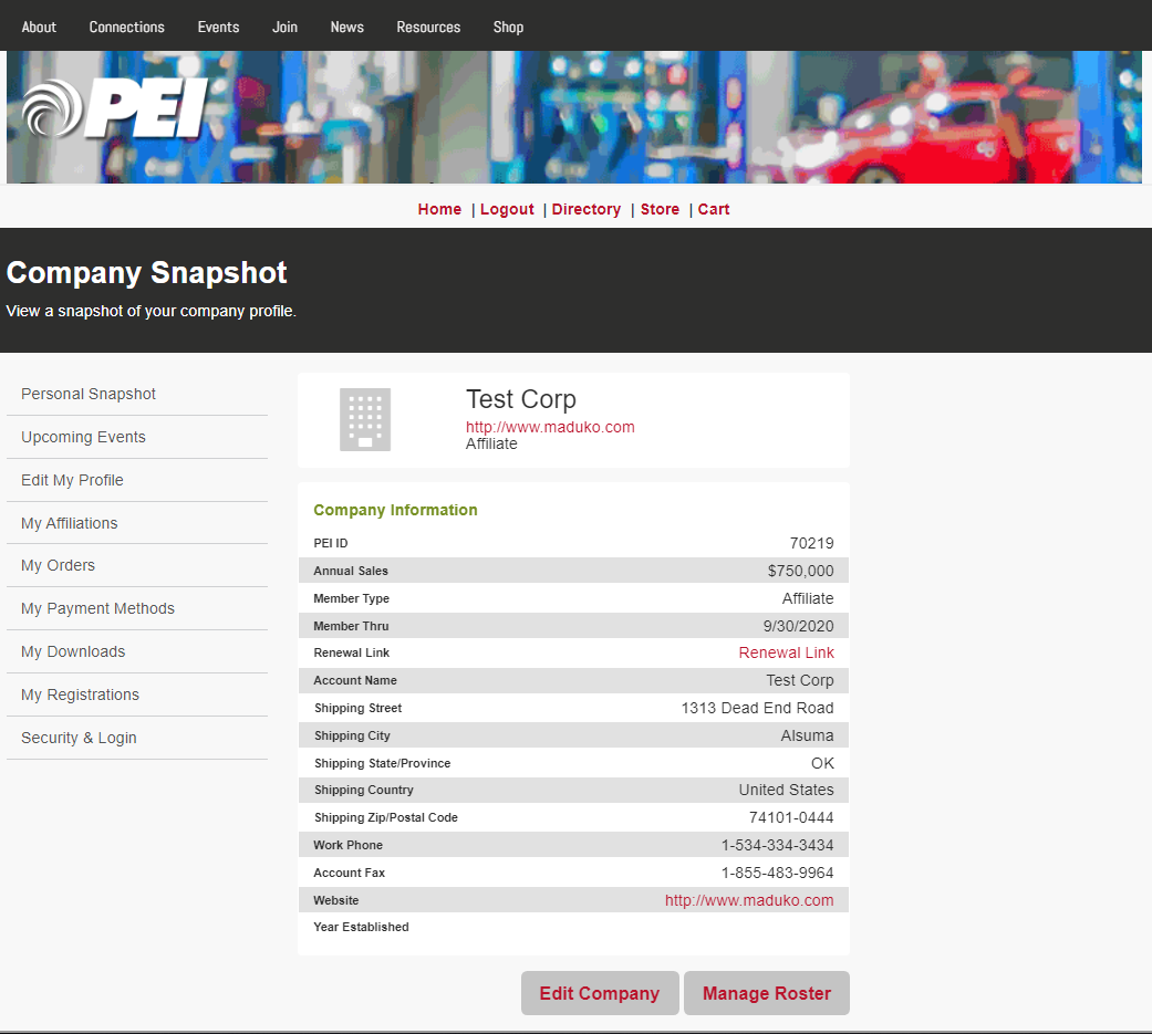 All PEI member company “official representatives” may access the renewal worksheet directly from their company snapshot. Log in at my.pei.org. You’ll see a “company profile” button.