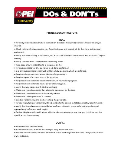 PEI promotes safety in the industry through member newsletters, safety posters and publications. Choose an item below to learn more.